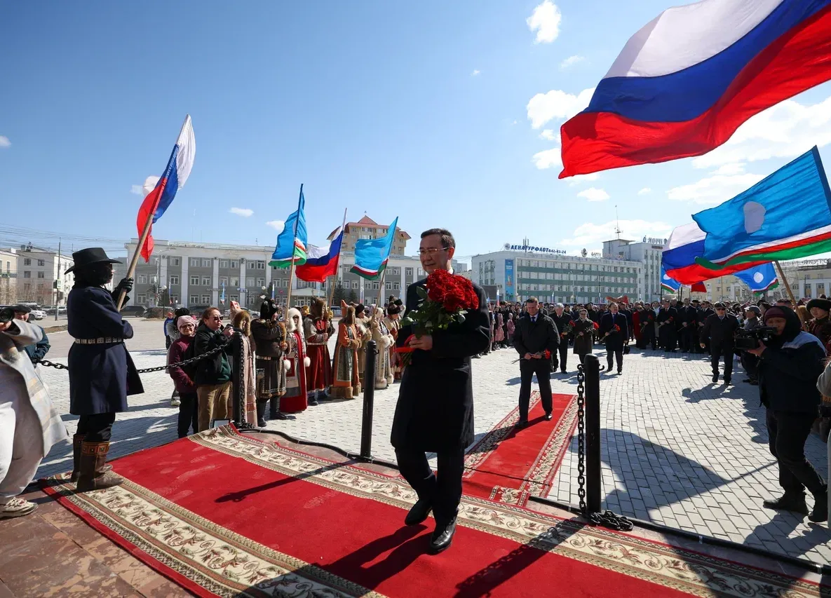 «27 апреля мы отмечаем один из самых значимых праздников. Эта дата занимает особое место в истории республики. В 1922 году выдающиеся сыны народа саха — Максим Аммосов, Платон Ойунский, Исидор Барахов, Степан Аржаков, Степан Васильев и их единомышленники — заложили основы нашей государственности, образовав Якутскую АССР. Это событие задало вектор культурного и экономического становления региона на десятилетия вперед», — отметил Айсен Николаев.