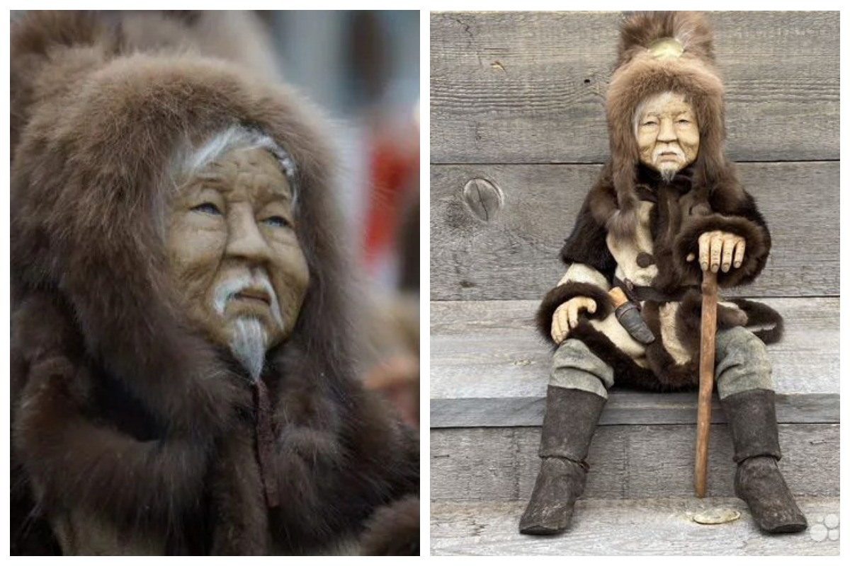 Есть предметы, которые выходят за рамки обычного декора, становясь проводниками в историю и культуру целого народа. Данная кукла высотой 40 см воплощает образ старца-мудреца, чья жизнь неразрывно связана с кочевым бытом. Мастеру удалось передать характер через выразительную мимику и характерную позу: в руках мудрец держит посох — символ долгого жизненного пути и духовной опоры, а на его поясе закреплены ножны, подчеркивающие готовность к суровым условиям якутской природы.