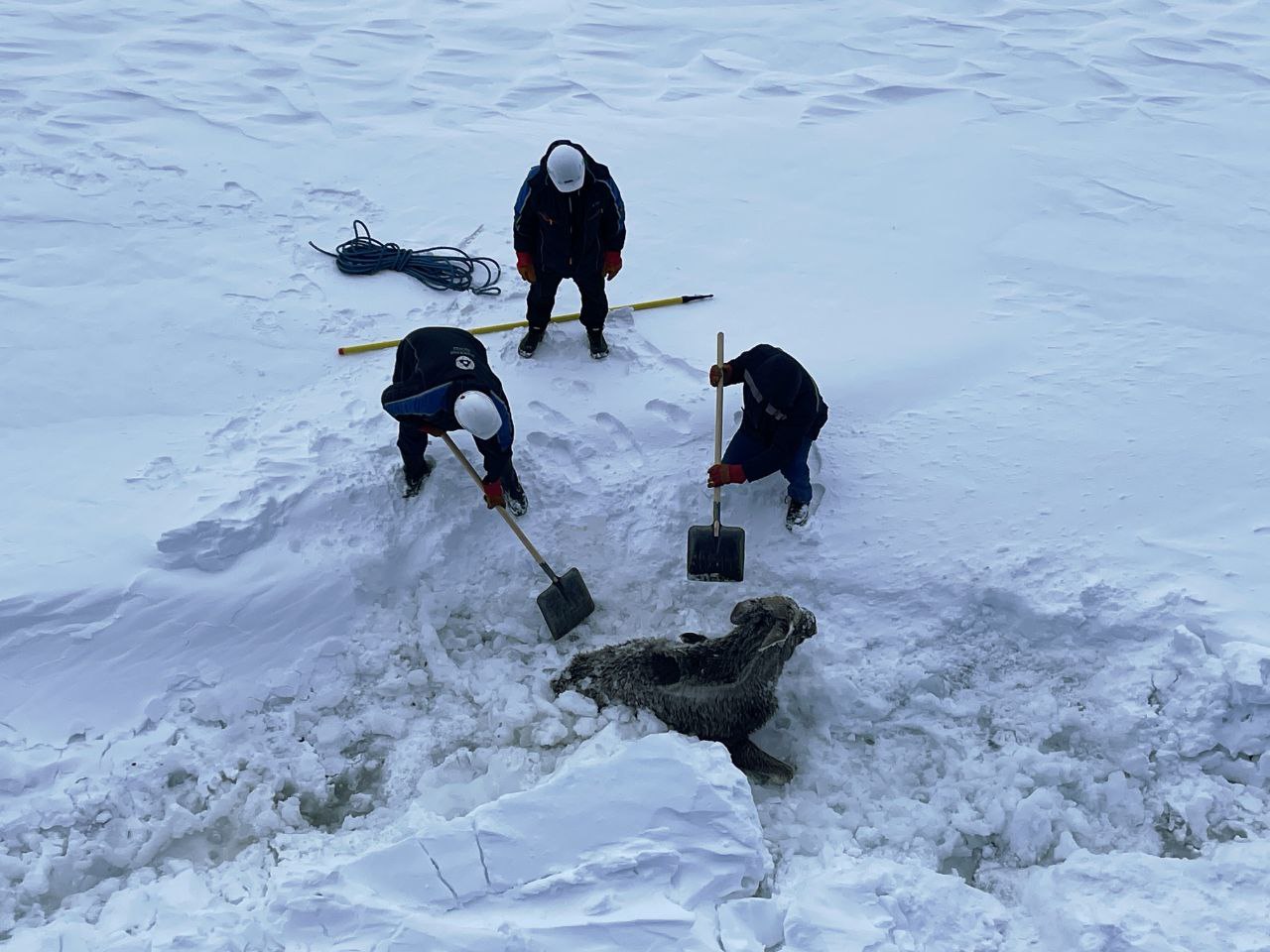 В 2025 году моряки спасли лосиху, застрявшую во льдах