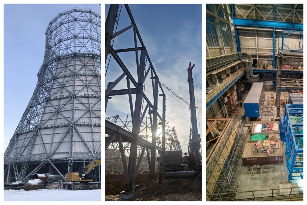 На площадке Южно-Якутской ТЭС активными темпами продолжаются строительно-монтажные работы. Две дымовые трубы котлов-утилизаторов собраны на 98%. Котлы-утилизаторы собраны на 95%, завершается монтаж вспомогательного котельного оборудования с трубной обвязкой.