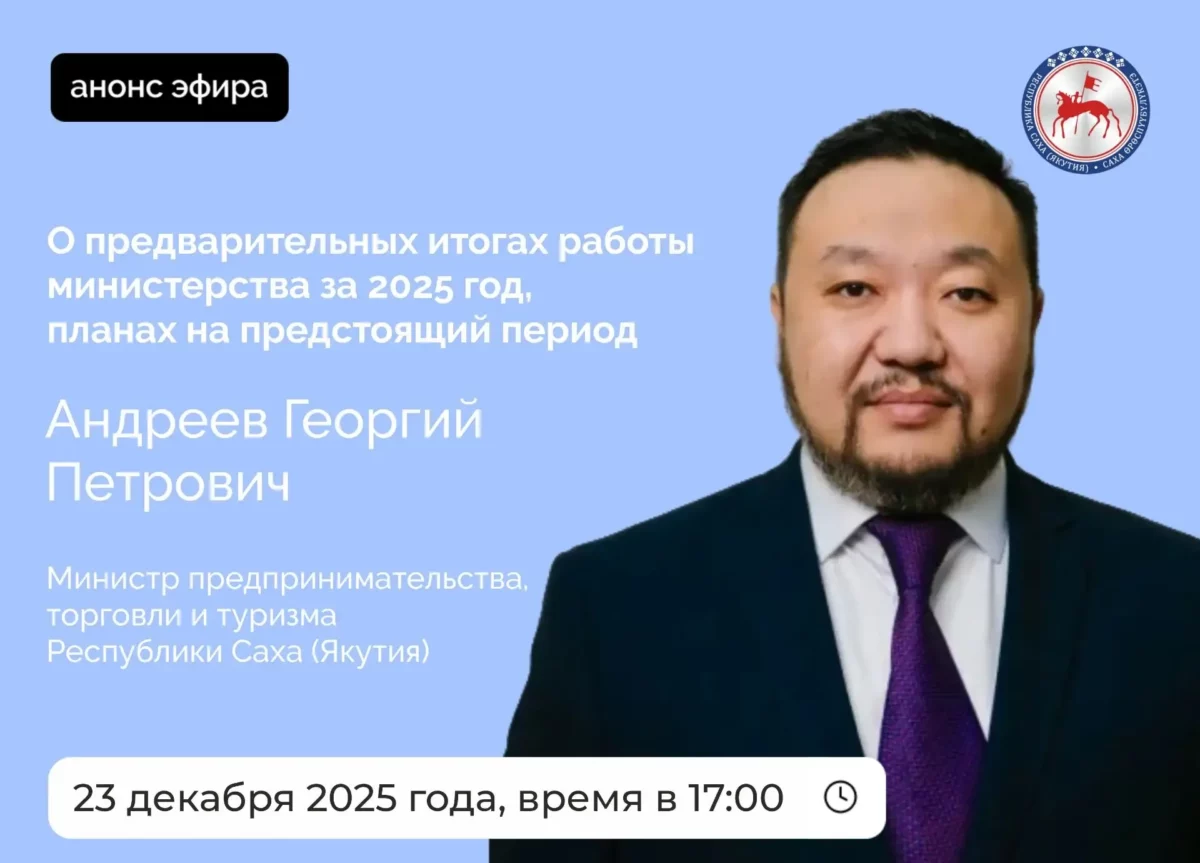 Министр предпринимательства, торговли и туризма Якутии Георгий Андреев во вторник, 23 декабря, проведет прямой эфир на официальных страницах администрации главы и правительства республики в социальных сетях «ВКонтакте» и «Одноклассники».