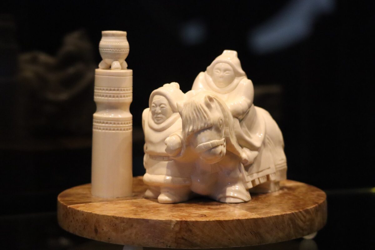 Экспозиция показывает произведения мастера, владеющего сложными техниками резьбы по бивню мамонта, ковкой и гравировкой благородных металлов.