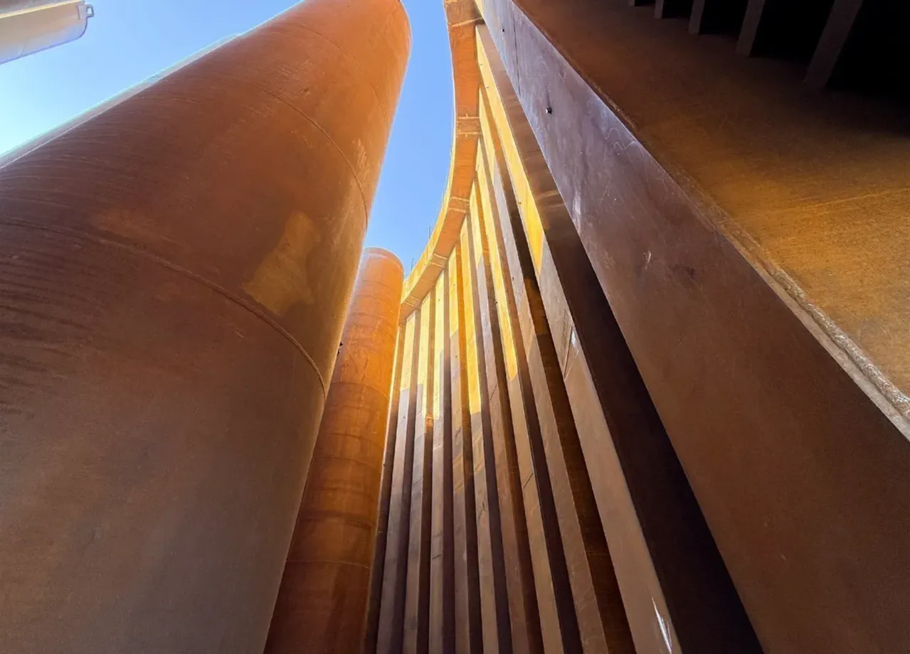 В российском мостостроении наплавные коффердамы применяются впервые. Это современное технологическое решение адаптировано к сложным гидрологическим условиям Лены. С помощью трех таких конструкций высотой более 17 метров в русле будут созданы сухие зоны для устройства фундаментов будущих пилонов моста.