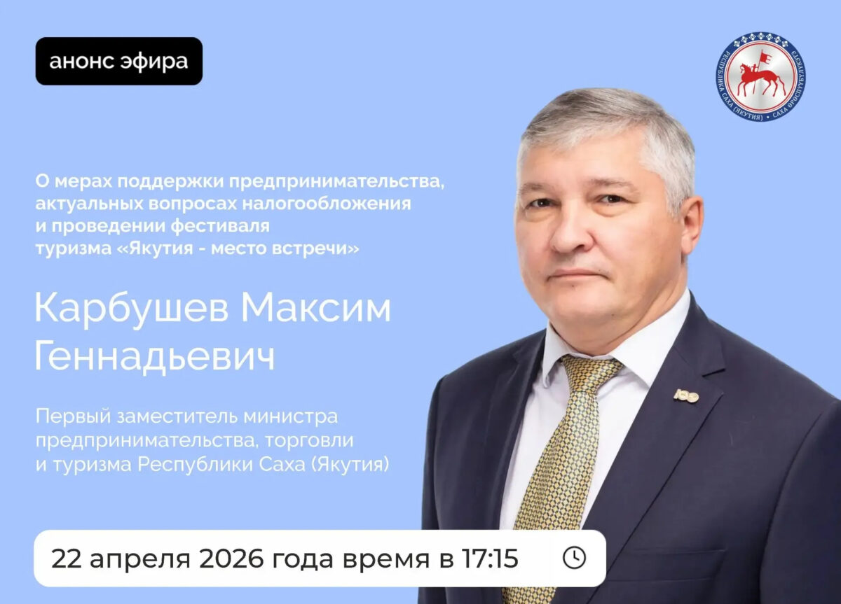 Первый заместитель министра предпринимательства, торговли и туризма Якутии Максим Карбушев в среду, 22 апреля, проведет прямой эфир на официальных страницах администрации главы и правительства республики в социальных сетях «ВКонтакте» и «Одноклассники».