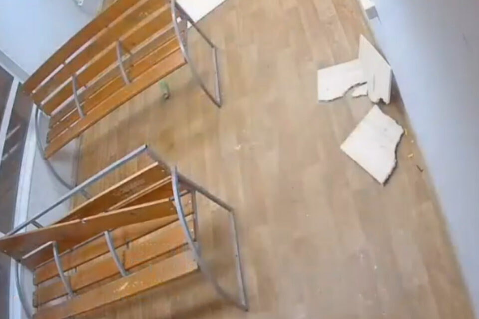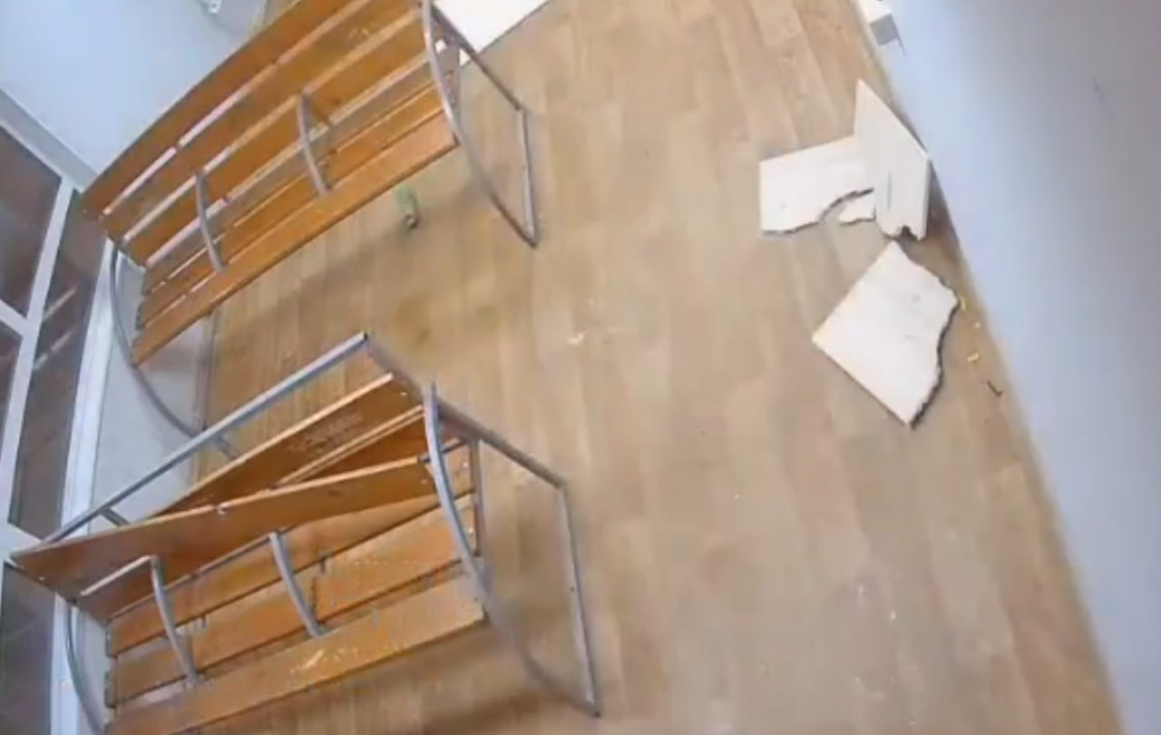 На кадрах видеозаписи видно, как дети забираются на скамейки и, пытаясь что-то спрятать на потолке, ломают потолочные панели. Данный факт передан в полицию для проведения проверки и принятия соответствующих мер.