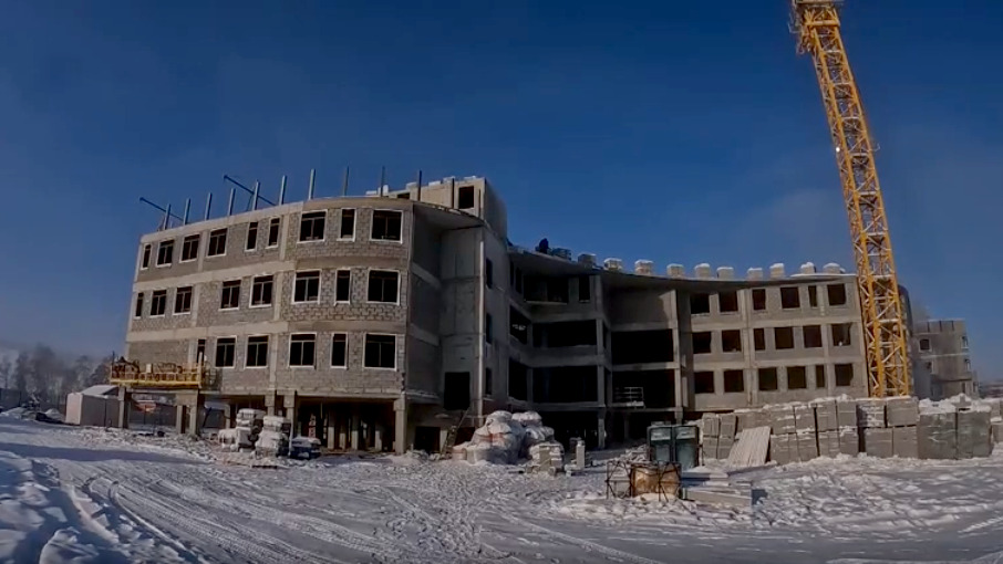 В настоящее время на объекте ведутся строительно-монтажные работы по возведению внутренних перегородок и наружных стен второго и третьего этажей здания.
