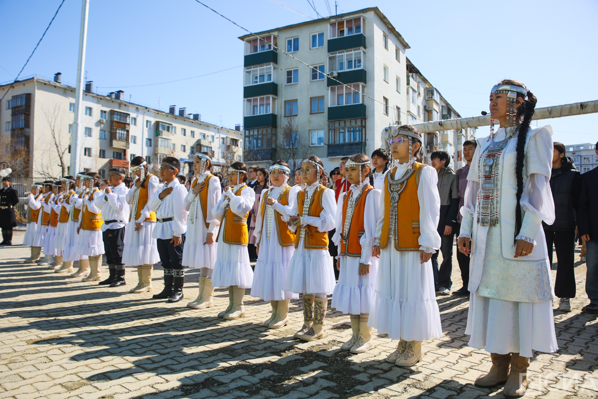24 апреля в Национальной политехнической школе № 2 Якутска традиционно состоялась линейка ко Дню республики. Во дворе учебного заведения выстроились учащиеся с пятого по 10-й классы. Школьники исполнили якутский гимн, выступили с якутскими танцами и игрой на хомусе.
