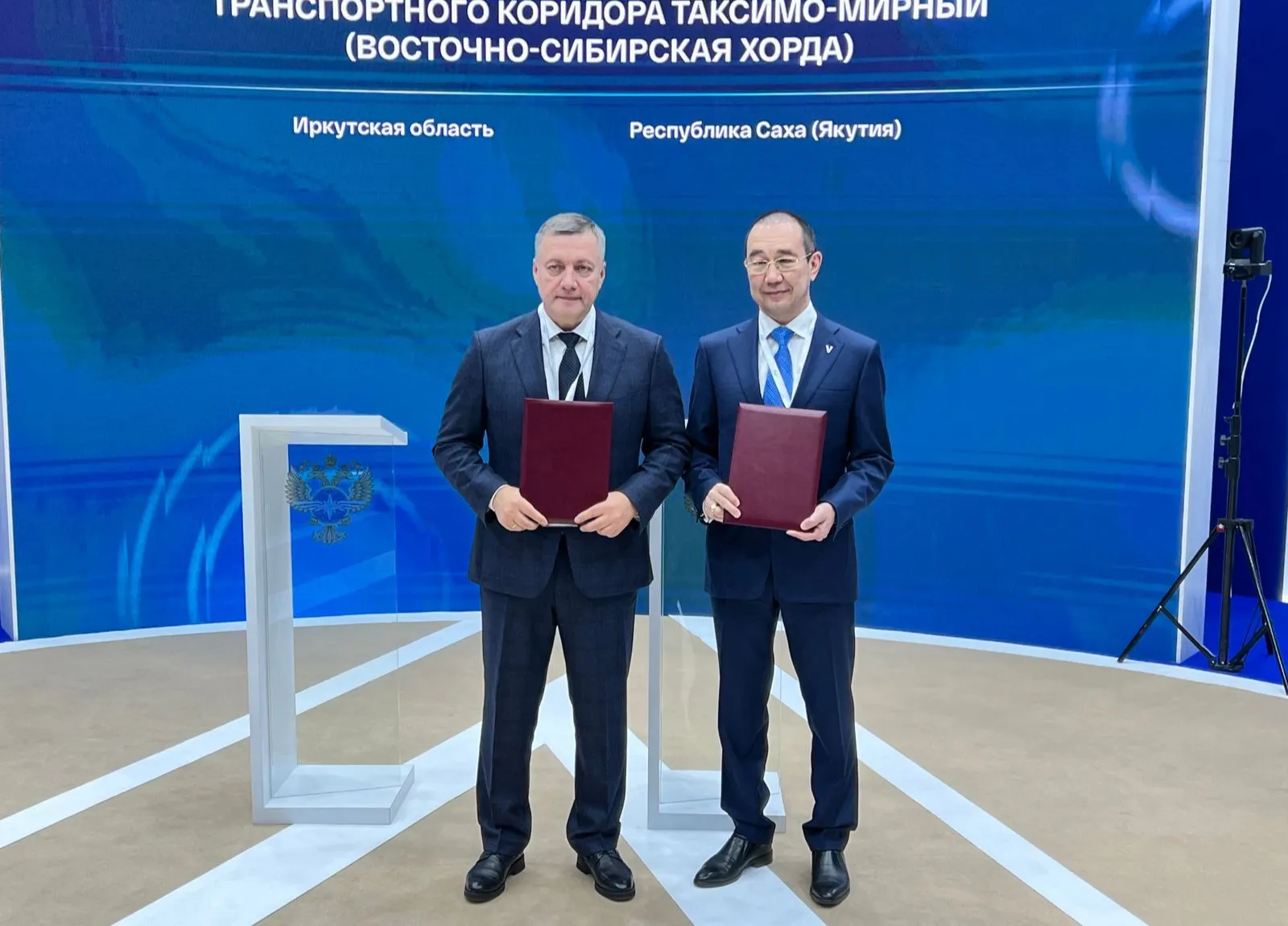 Глава Якутии Айсен Николаев и губернатор Иркутской области Игорь Кобзев подписали соглашение о создании транспортного коридора Таксимо – Мирный с рабочим названием «Восточно-Сибирская хорда». Церемония состоялась на XIX Международном форуме и выставке «Транспорт России» в рамках Транспортной недели.