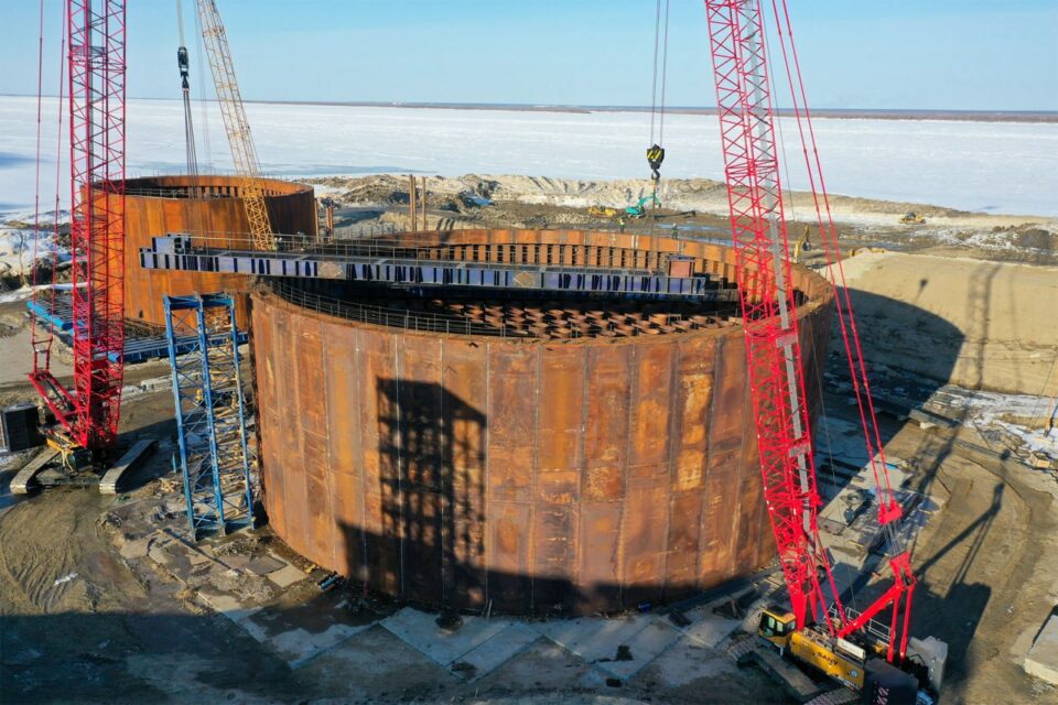 Рядом на площадке полностью собран боковой коффердам опоры № 10, готовый к сплаву. С приходом половодья его начнут перемещать к месту установки у правого берега. Операцию прорабатывают совместно с компаниями речного флота и Минтрансом Якутии.