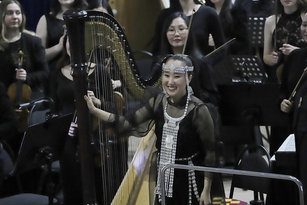 Именно поэтому после официальной части концерт продолжился произведениями якутских композиторов, которые сегодня звучат как заново открытая страница национальной музыкальной культуры. Симфоническая поэма «Предание» («Сэhэн») Полины Ивановой прозвучала как образное размышление о силе предков, своих корней. Следом исполнили симфонию «Якутская» Германа Комракова — произведение, в котором национальные мотивы звучат на редкость естественно и глубоко, составляя самую основу музыки. Завершила этот раздел программы концерт-поэма «Тойук» для арфы с оркестром Владимира Ксенофонтова; сольную партию исполнила заслуженная артистка Якутии Наталья Соломонова, тонко подчеркнувшая вокальную природу и внутреннюю пластику этого сочинения.