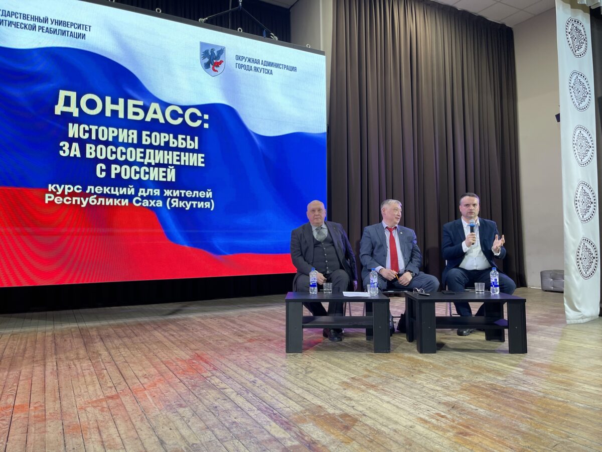 В городской национальной гимназии Якутска 24 марта состоялась презентация книги (методического пособия) «Донбасс: история борьбы за воссоединение с Россией». Ее представили сотрудники Центра этнополитической реабилитации Донецкого государственного университета Мирослав Руденко и Юрий Николаев, а также помощник главы Якутска Сергей Сергеев.