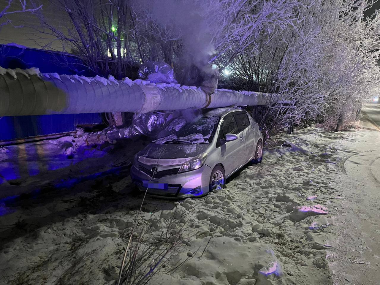 В Якутске пьяная женщина на Toyota Vitz врезалась в теплотрассу
