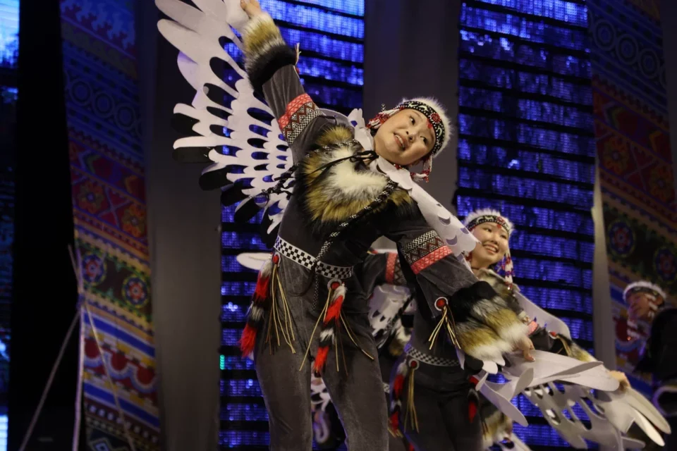 Композиция «Дыхание Севера» в исполнении танцевального коллектива «Бриллианты Якутии», театрализованное представление «Далеко-далеко вьется дымка очага», выступление этноквартета «Дьол» с песней «Тус Хоту». Эти и другие профессиональные постановки сегодня, 30 апреля, имели возможность увидеть зрители на сцене Дома дружбы народов имени А.Е. Кулаковского. Здесь состоялось торжественное собрание, посвященное Дню коренных малочисленных народов Российской Федерации.
