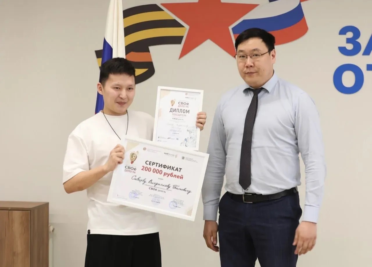 В филиале фонда «Защитники Отечества» завершился третий образовательный проект «Свое дело|14». Его организатором выступил центр «Мой бизнес» при министерстве предпринимательства, торговли и туризма Якутии. Победителем стал ветеран специальной военной операции (СВО) Владислав Сивцев, который успешно защитил бизнес-план по производству изделий из натуральной кожи и получил грант 200 тысяч рублей на развитие своего дела.