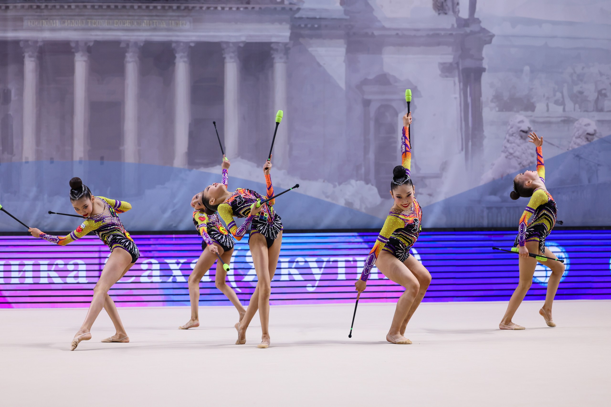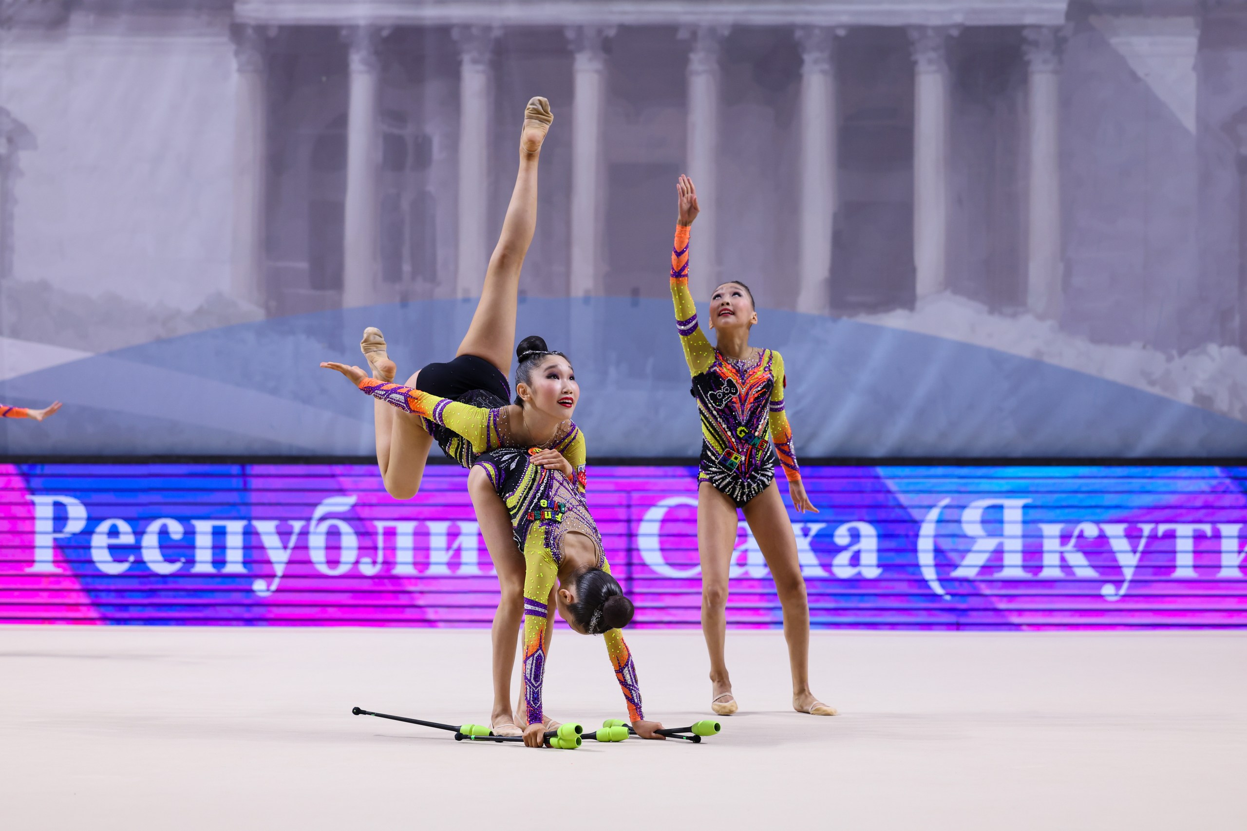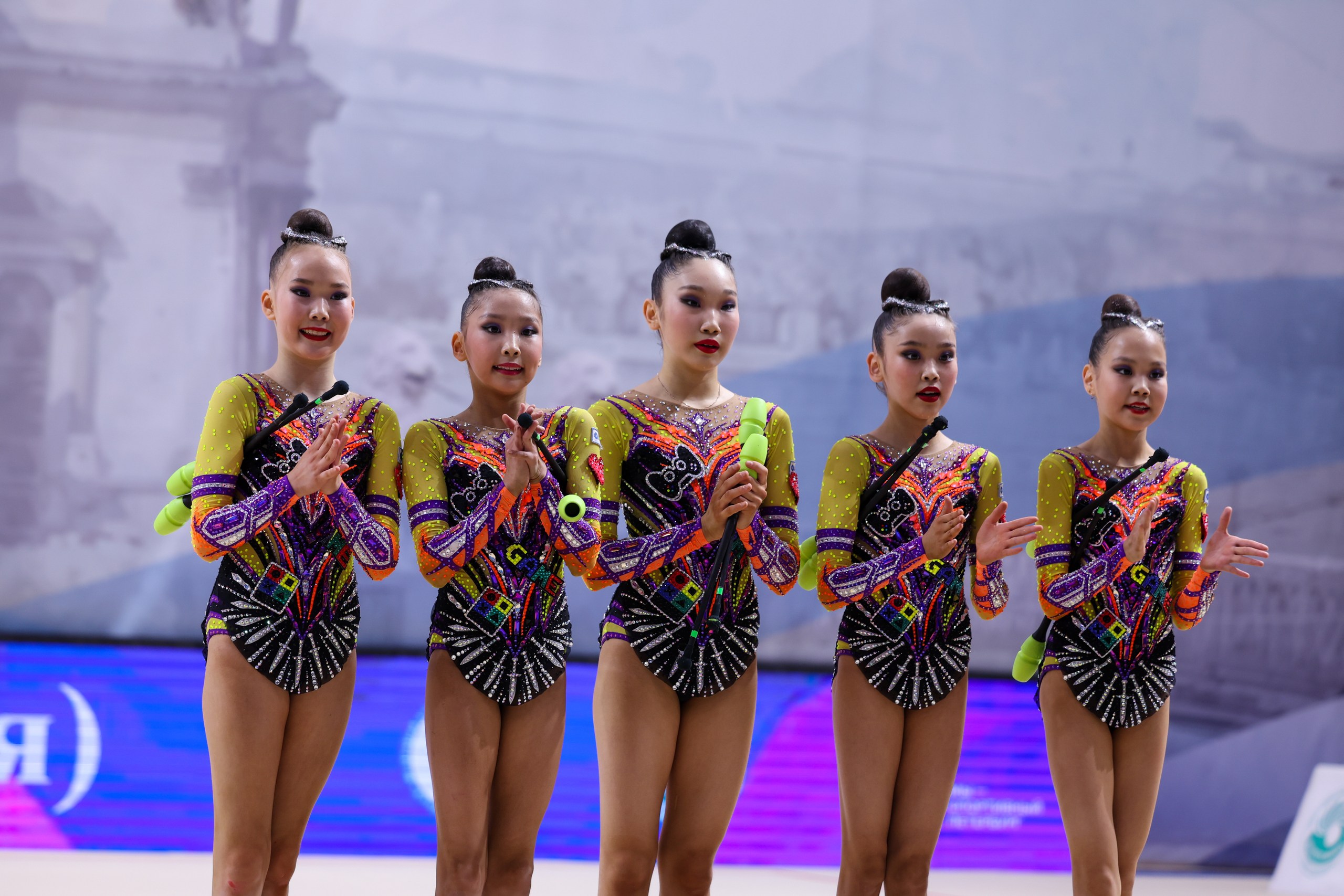 Гимнастки показали два номера — с пятью лентами и пятью парами булав. Раньше в этом возрасте ни одной команде из Якутии не удавалось пройти отбор на всероссийский уровень, поэтому само участие уже стало большим достижением. Путёвку на первенство России девочки завоевали на турнире Дальневосточного федерального округа в Якутске. Тогда они взяли два золота и одно серебро, впервые в истории якутского спорта став лучшими в абсолютном многоборье.