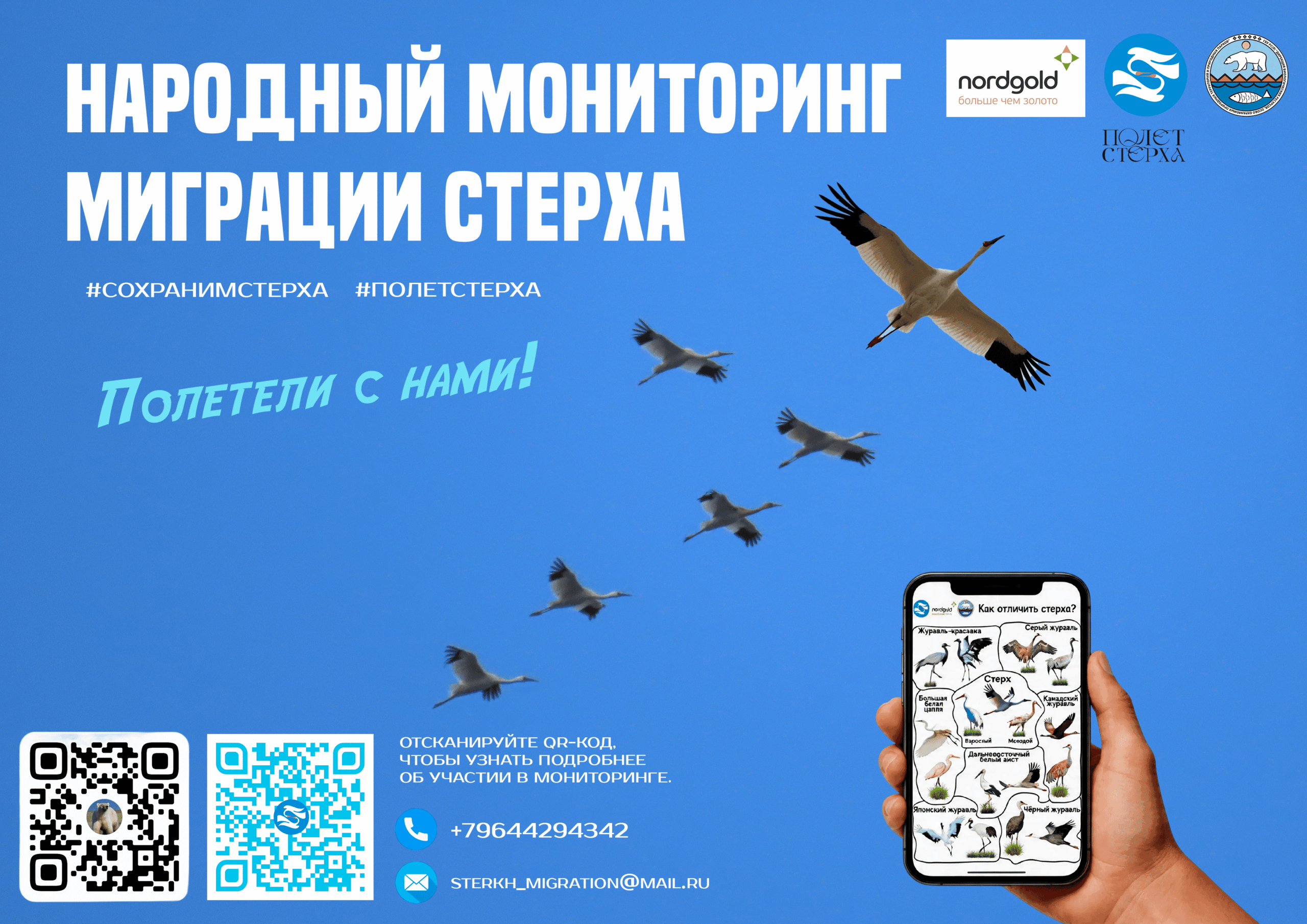 Анкету и познавательные материалы можно скачать по QR-коду. Данные и медиафайлы принимаются по телефону +7 964 429-43-42 или на электронную почту: oopt_dbr@mail.ru и sterkh_migration@mail.ru.