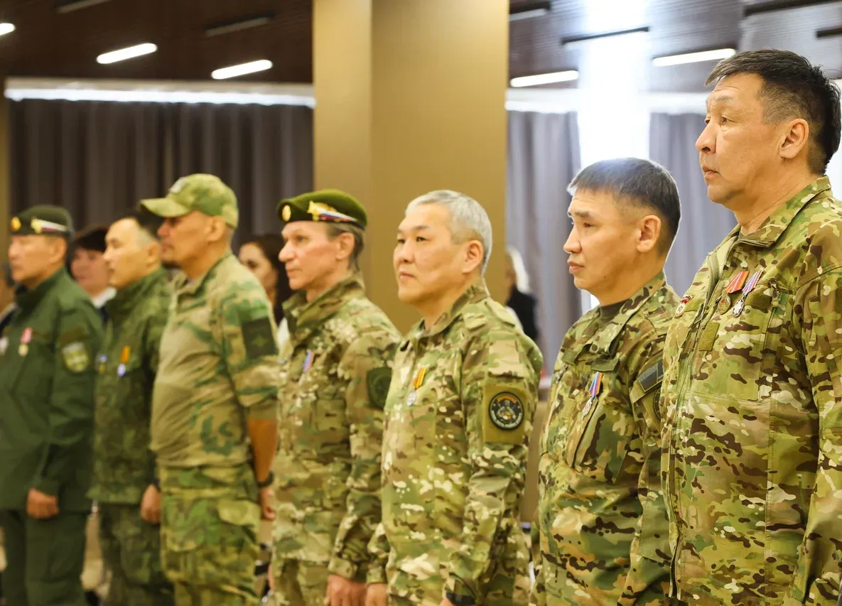 В филиале госфонда «Защитники Отечества» в Якутии прошла торжественная церемония вручения нагрудных знаков «Доброволец Донбасса». Этой наградой отмечают членов Союза добровольцев Донбасса, участвовавших в боевых действиях на территории ДНР. Также знаки получили супруги военнослужащих, находящихся на передовой.